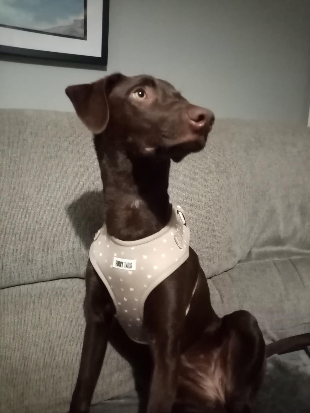 Lovely harness much better than others I have tried, the quality of the material is perfect for use and it fits my dog very comfortably.